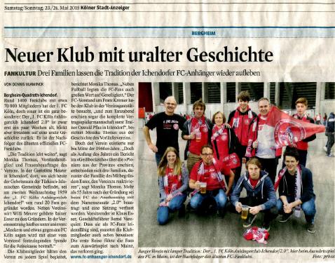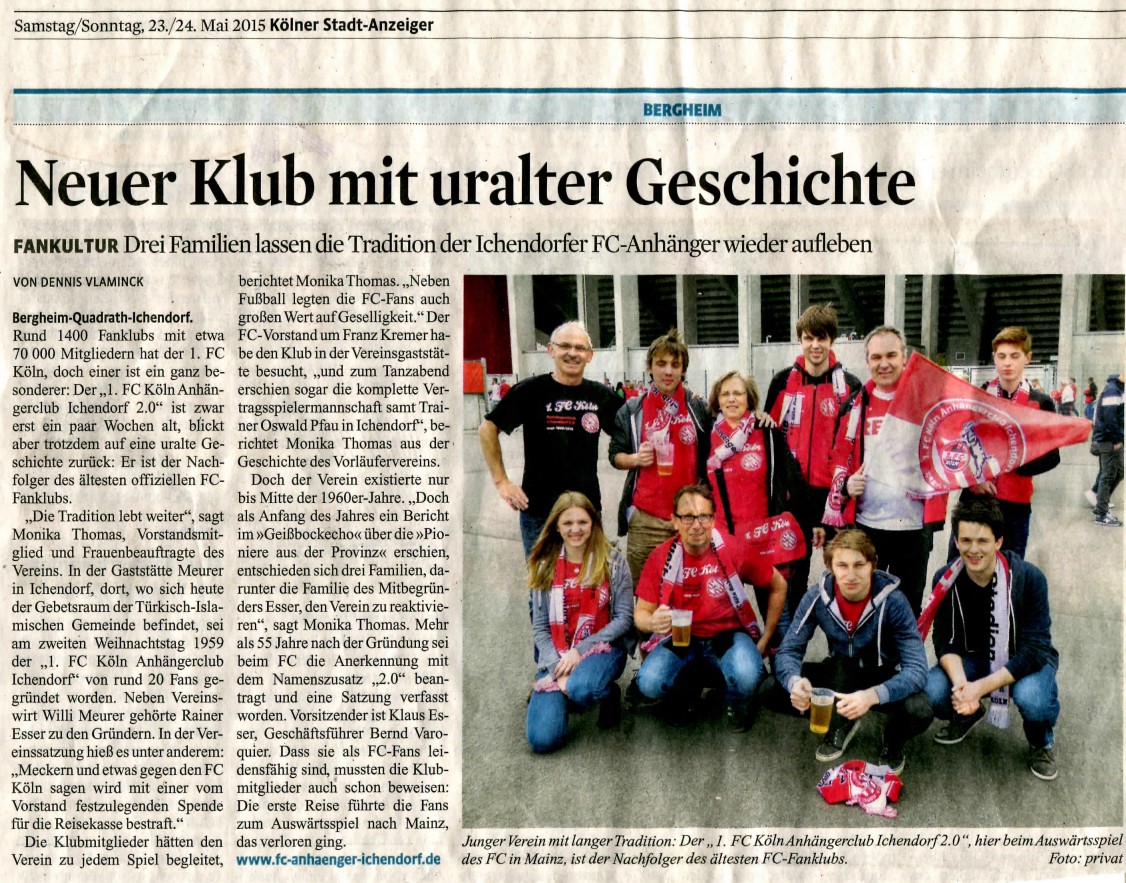 Natürlich fand auch die spannende Geschichte über die Gründung des allerersten Fanclubs des 1. FC Köln im Dezember 1959 – dem 1. FC Köln Anhängerclub Ichendorf in der Gaststätte Meuer in Ichendorf (der Begriff Fanclub kannte man damals noch nicht) Erwähnung.